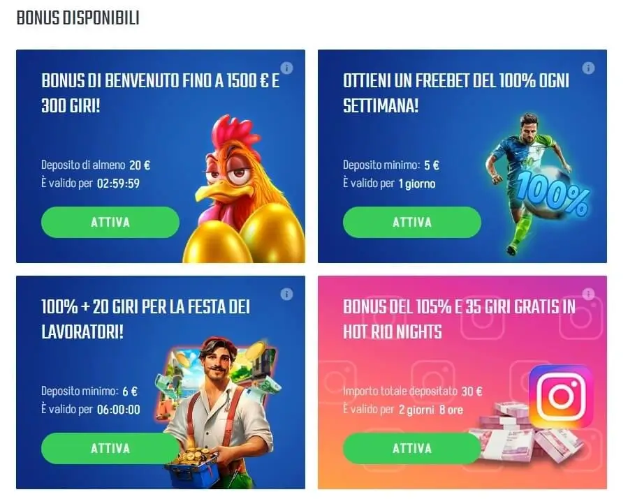 - Accettazione dei termini specifici del bonus nella sezione “Promozioni”