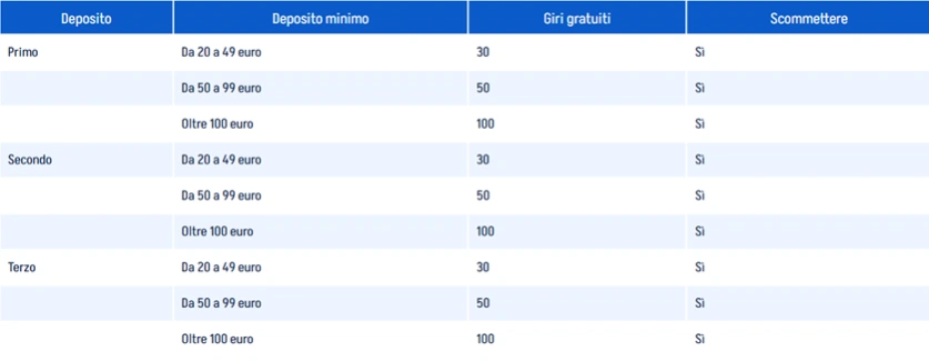 - Il bonus di benvenuto, incentivo tipico per chi si registra sul portale, consiste nel riconoscimento di un importo in seguito al primo deposito, espresso sia in percentuale che in moneta.