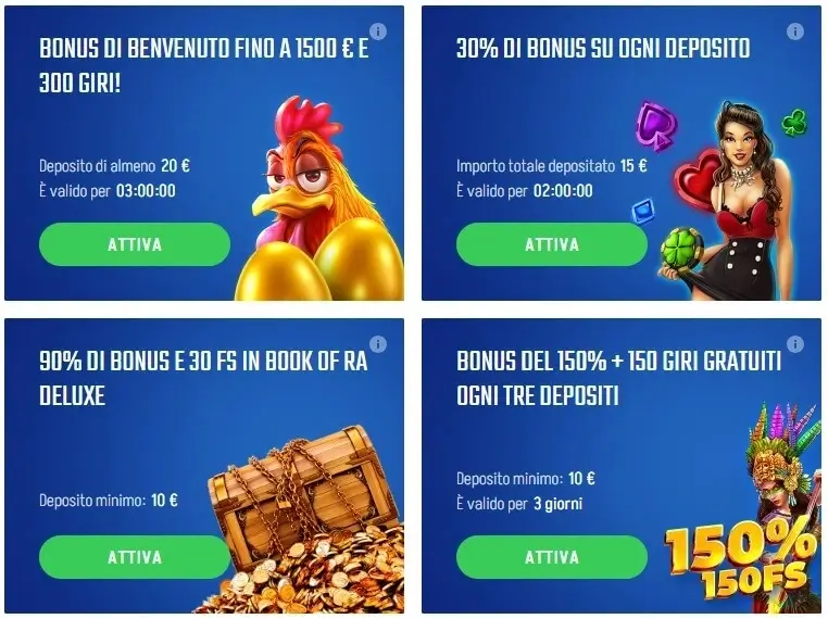 - Sempre promozioni scherze, guai che affliggono certi casini…Ma le sorprese non finiscono con quella, perchè ci son tornei di vario grido, viaggia il cashback e fioccano i bonus speciali, tutti berretti con volta, per condurvi a meta costante i vostri divertimenti.